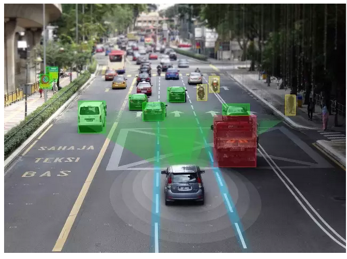 可以实时感知外部环境,识别视野中出现的车辆、行人、电动车,自行车,小动物(猫狗)等常见物体,并确保高密度人流、车流下的检测效果。