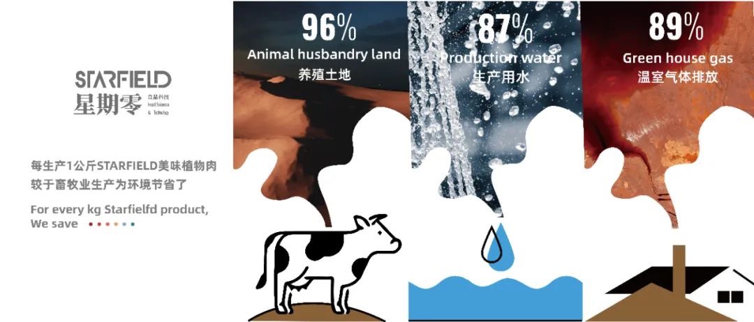 地球一半的土地被用于畜牧业,而畜牧业产生的温室气体在全球温室气体排放总量中的比例接近15%,是所有交通工具排放的总和。并由此带来了严重的环境、贫困、动物福祉以及人类健康问题。联合国科学家表示,饲养动物作为食物是“世界上最紧迫的环境问题的主要原因之一,包括全球变暖,土地退化,空气和水污染以及生物多样性的丧失”。生产1KG牛肉需要大约15000升水,而一公斤小麦需要1600升。与生产1KG的牛肉相比,生产1KG星期零植物肉节省了87%生产用水、89%温室气体排放和96%养殖土地,而且产品还含有更少的脂肪,0胆固醇,0抗生素,也几乎不可能带有各类动物细菌病毒等。